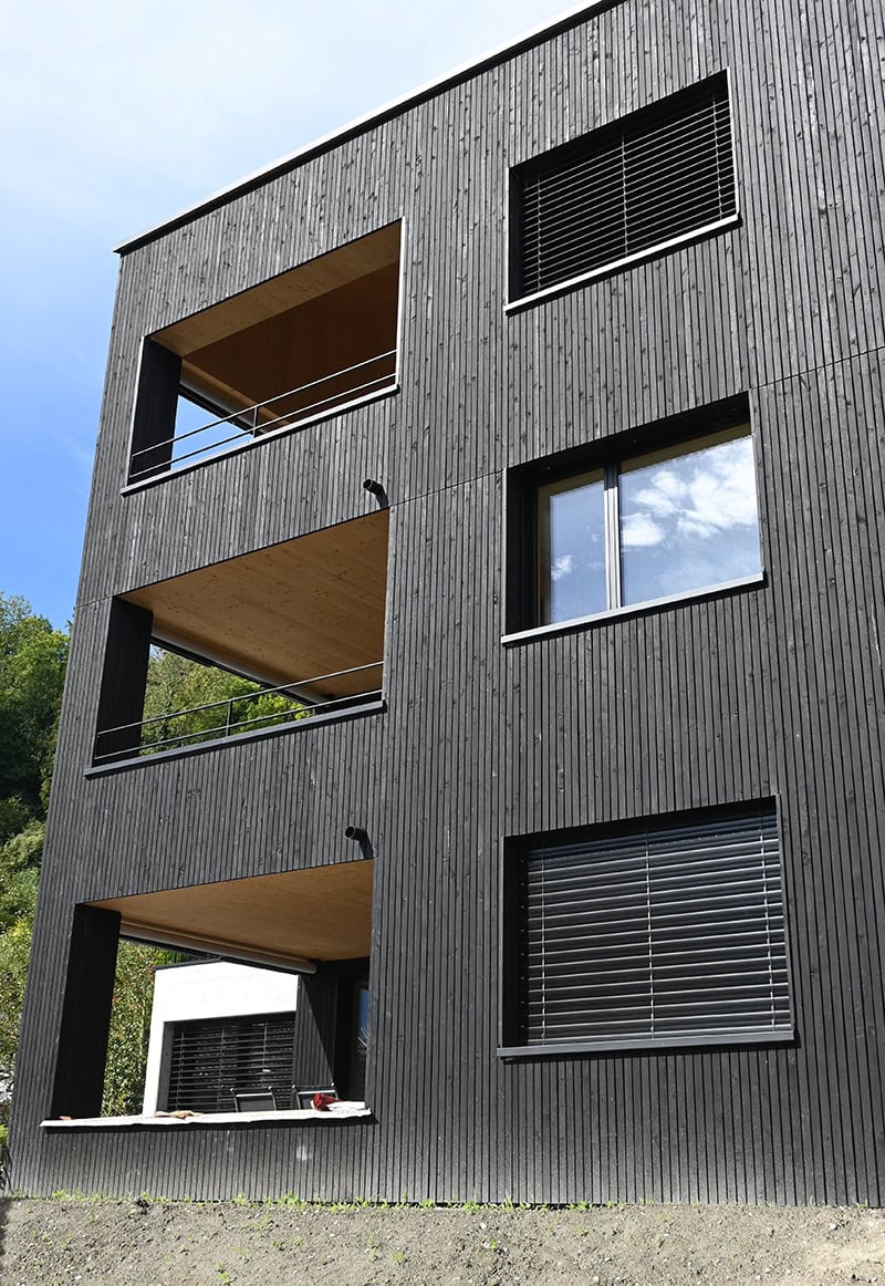 Bei diesem Mehrfamilienhaus in Rans durften wir die gesamte Fassade realisieren – von der Dämmung und Winddichtung über die Unterkonstruktion bis hin zur Bekleidung mit schwarzer Holzschalung. Durch die präzise Ausführung entstand eine moderne Gebäudehülle, die nicht nur langlebig und energieeffizient ist, sondern auch durch ihre markante Optik überzeugt. Das Projekt zeigt, wie Funktionalität und Gestaltung im Fassadenbau harmonisch zusammenspielen und architektonische Akzente setzen können.